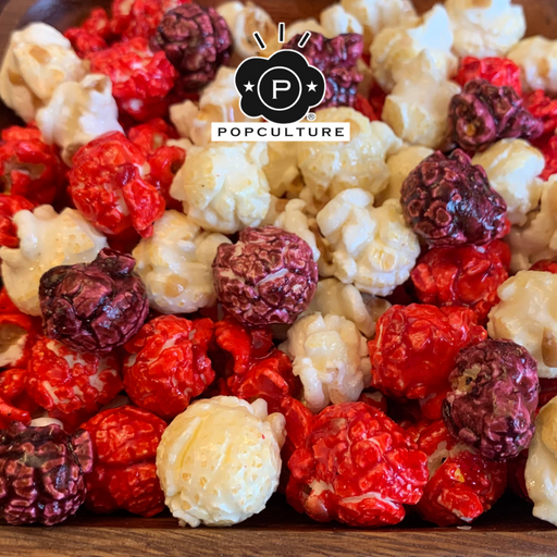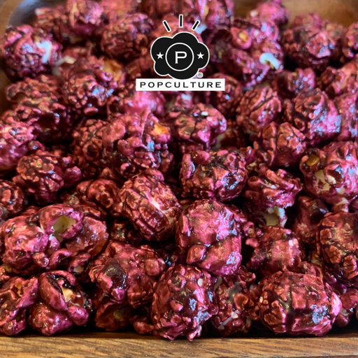 Popculture Gourmet PopcornVanilla Dr. Pepper--but crunchier. Color palate: purple, plum, maroon, white