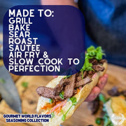 Unleash authentic flavors from all over the world with our gourmet 6 pack collection of artisanal seasonings and spice blends. We've captured the essence of some of the most rich and storied cuisines of the world: Thailand, Jamaica, Morocco, Tuscany, Cajun, and Greece.