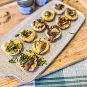 While this collection of six gourmet sea salts and artisan seasonings makes the perfect housewarming or host/hostess gift, the delicious diversity of flavors on hand here mean you may just end up getting one for yourself. This set is crafted to be all that you need in preparing for and during a picnic or day excursion, or for those days when picnicking just means eating outside. Greek Tzatziki Sea Salt delivers on all of the flavors of tzatziki without the mess of yogurt – wonderful for adding mellow, savory layers of flavor to sliced veggies, goat cheese, and green salads. California sea salt is a finely ground, all-natural base upon which to build your flavors, imparting the clean, crisp salinity of the Pacific. Carrying on from this, our Taste of California seasoning captures iconic flavors from the Golden State – a delicious, sweet & savory blend of dried strawberry, lemon peel, cilantro and time. Eye poppingly red from the strawberries and with just the right mix of sweet and zesty, this gourmet salt-free spice blend is perfect sprinkled on salads, on cold fish, cheeses, and to liven up spreads and dips like hummus. Our smoked sea salt delivers rich, umami flavors of Alderwood, and is great for either amplifying the smokiness of outdoor cooking bringing that essence to meals made in the oven. Taste of Bordeaux is a true homage to the delicate flavors of France's famous wine region, an elegant, light, salt-free seasoning that adds a wonderful accent when used in baking or as that finishing touch on dips, spreads, soft cheeses, butter, and potato salad. Finally, Crystallized Honey Sea Salt is just as wonderful as a compliment to the last course (sprinkled on yogurt, fruit, cheese, preserves and jams) as it is on more savory fare like potato salad, roast mixed veggies, pork dishes, and freshly sliced tomatoes. All salts and seasonings are Project Non-GMO certified and made in small batches in California before being hand-packed in our unique magnetic tins.