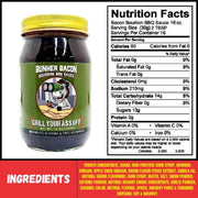 Expertly crafted for the bourbon bacon barbecue lover. Enjoy the thick, rich, and delicious flavor of bacon and bourbon combined into one jar of BBQ sauce. Our Bunker Bacon Bourbon BBQ Sauce will surely add a layer of sweet, smokey, savory flavor that follows up with a bite of bourbon at the end. There is no doubt you’ll savor every bite of it. Perfect for grilling - add as a marinade or condiment for red meat or chicken.