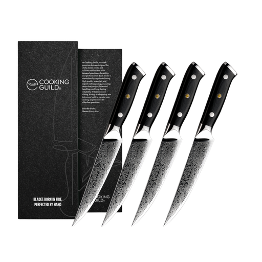 TheCookingGuildOnly 50 sets available. If you take your steak seriously, you need the right tools. Our new Steak Knife Set is forged from Japanese AUS-10 Damascus...